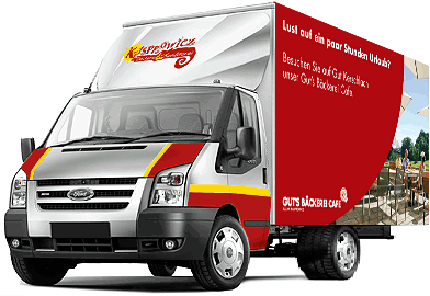Idyllisch, aber etwas abgelegen ist das Gut’s Bäckerei Cafe. Mit dem "Leitmotiv" – der Sonnenterrasse – wirbt ein Transporter der Bäckerei täglich auf's Neue für das Cafe.