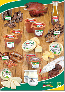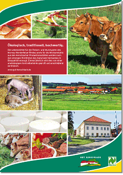 Zu Verkostungsaktionen in ausgesuchten Lebensmittelmärkten wurden Verkaufshilfen für die ökologische Landwirtschaft auf Gut Kerschlach gestaltet, welche die Integration der fotografierten Produkte beispielhaft zeigt.