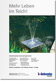 Zum Zwecke der Vermarktung von frei schwimmenden Solarspringbrunnen Anzeigen und Produktblätter gestaltet.